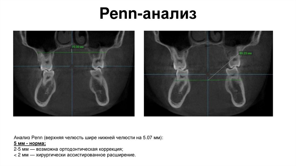 Penn-анализАнализ Penn (верхняя челюсть шире нижней челюсти на 5.07 мм):