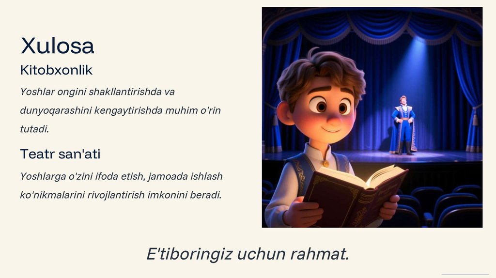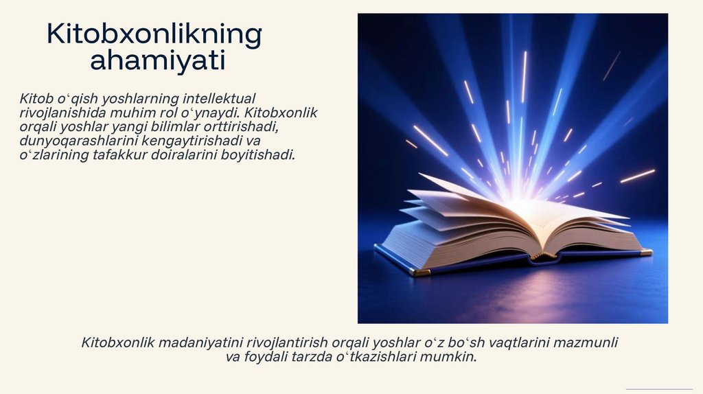 rivojlanishida muhim rol oʻynaydi. Kitobxonlik