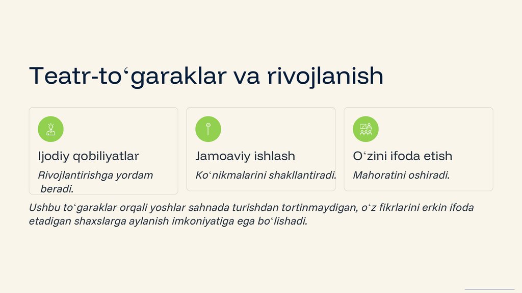 Teatr-toʻgaraklar va rivojlanishIjodiy qobiliyatlar
