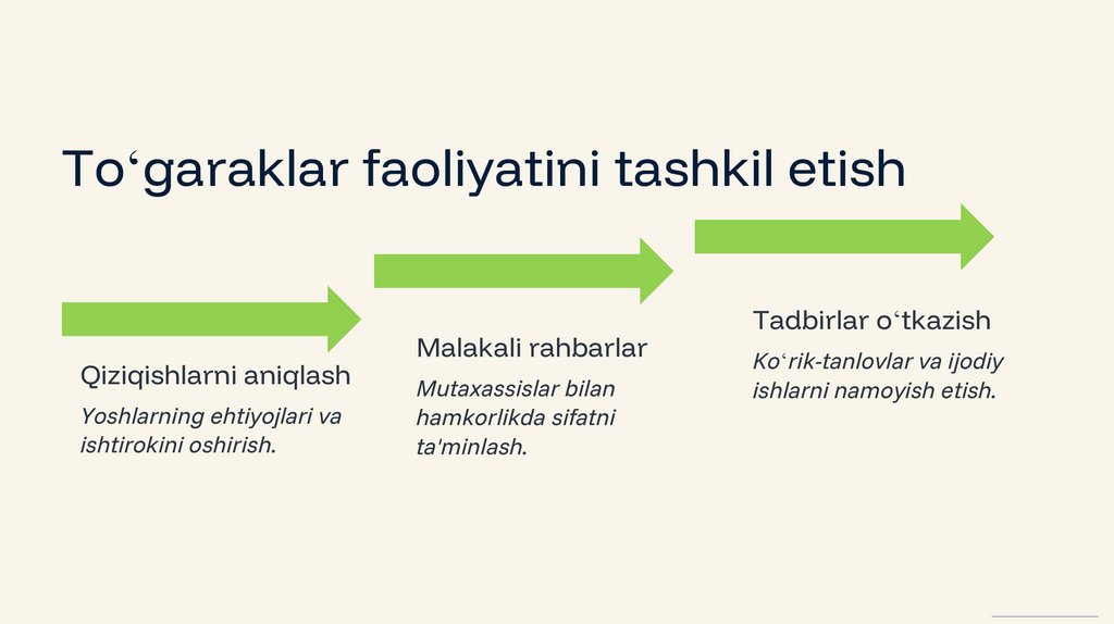 Toʻgaraklar faoliyatini tashkil etishQiziqishlarni aniqlash