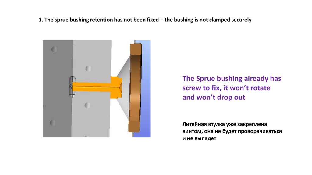 1. The sprue bushing retention has not been fixed – the bushing is not clamped securelyThe Sprue bushing already has