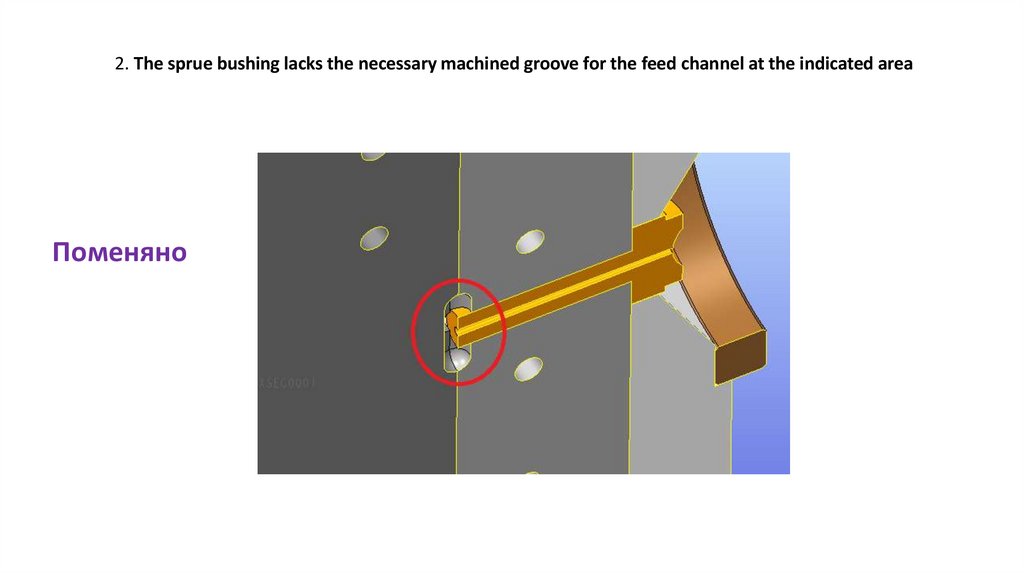 2. The sprue bushing lacks the necessary machined groove for the feed channel at the indicated areaПоменяно