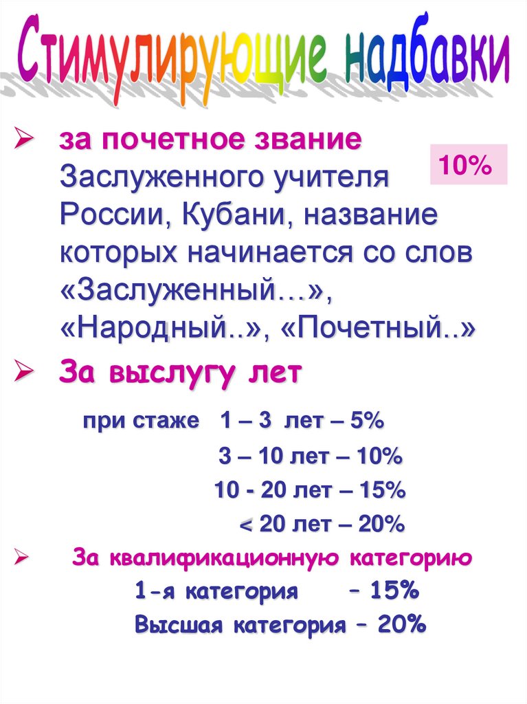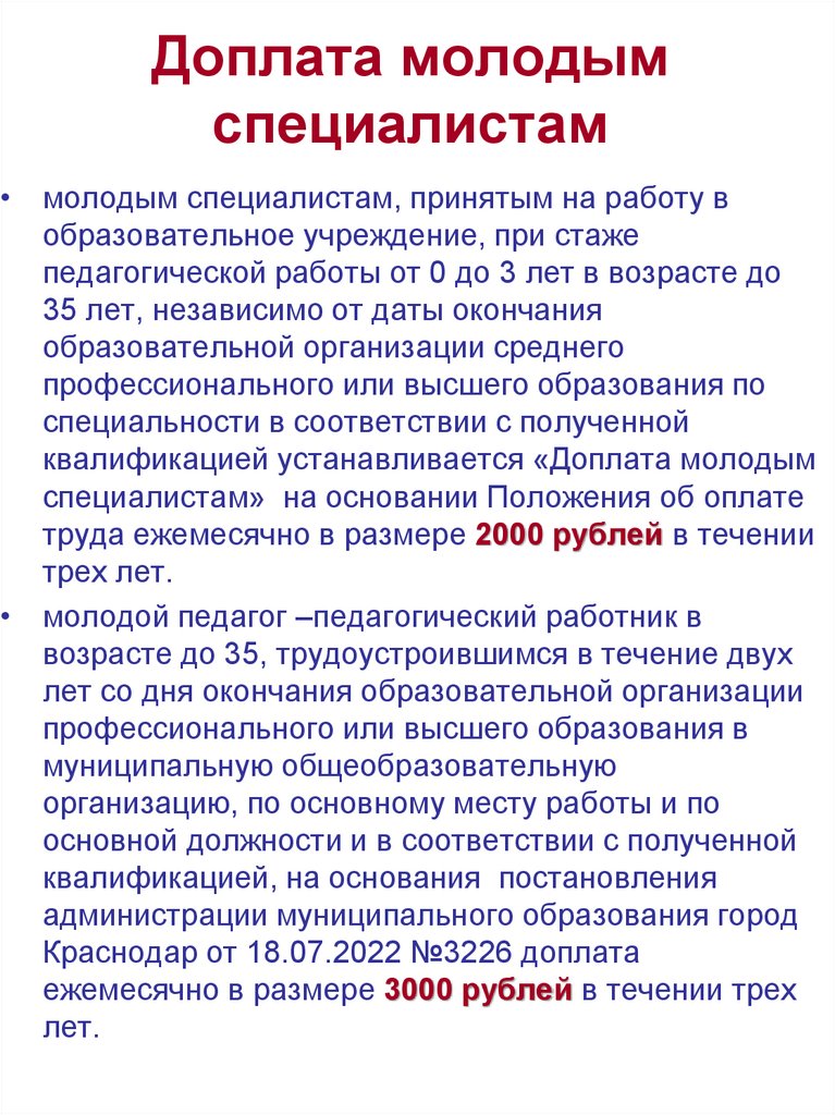 • молодым специалистам, принятым на работу вобразовательное учреждение, при стаже
