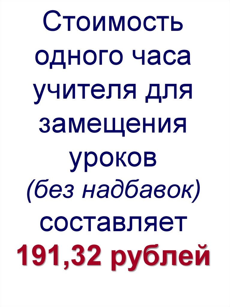 7. Стоимость одного часа учителя для замещения уроков (без надбавок) составляет 191,32 рублей