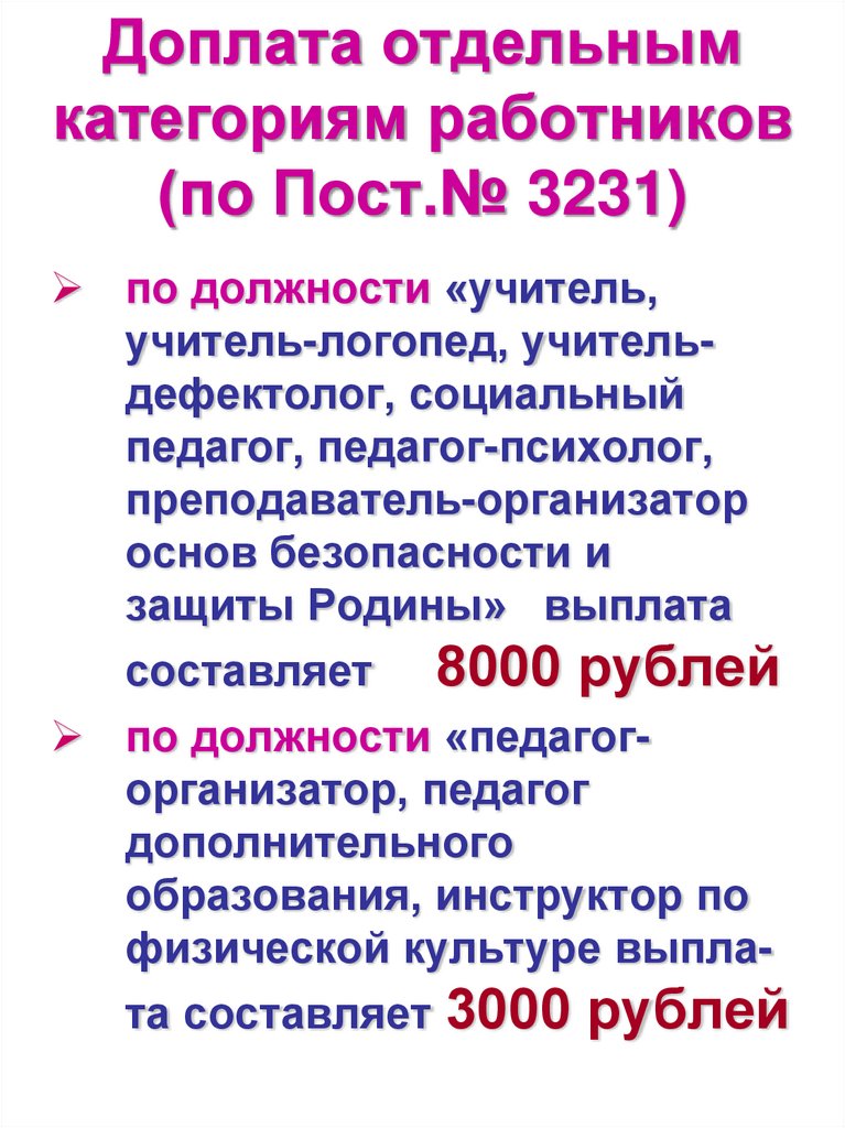 8. Доплата отдельным категориям работников (по Пост.№ 3231)