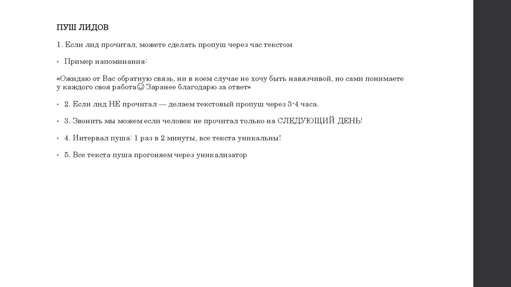 ПУШ ЛИДОВ1. Если лид прочитал, можете сделать пропуш через час текстом