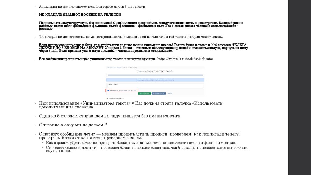Вылет / спам / заморозка (дэ-факто): отправляется отчет по аккаунтам, с которыми производится работа