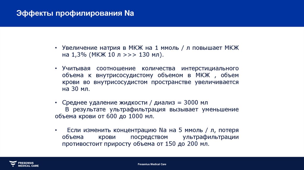 Эффекты профилирования Na• Увеличение натрия в МКЖ на 1 ммоль / л повышает МКЖ