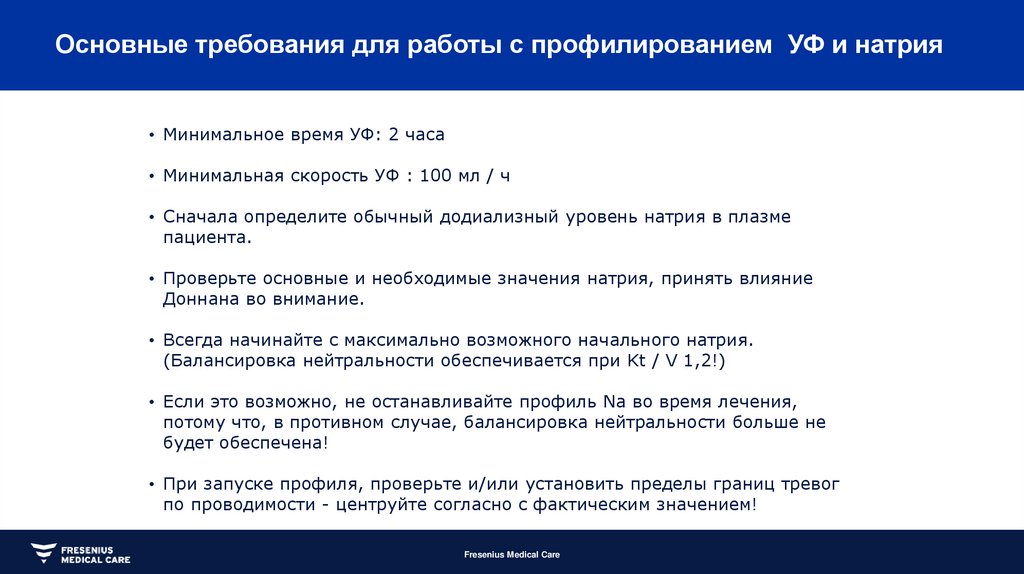 Основные требования для работы с профилированием УФ и натрия• Минимальное время УФ: 2 часа