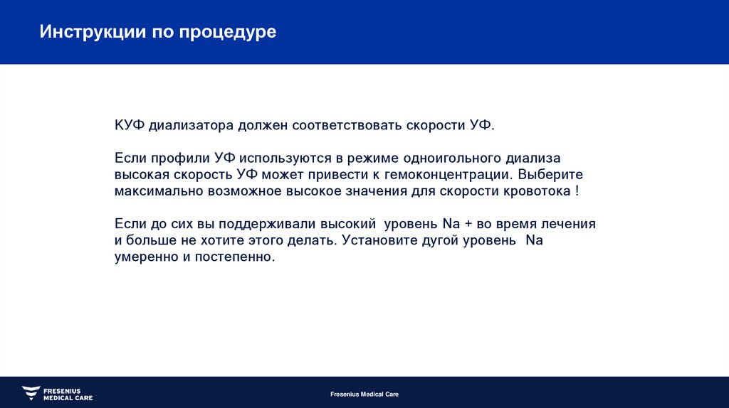 Инструкции по процедуреКУФ диализатора должен соответствовать скорости УФ.