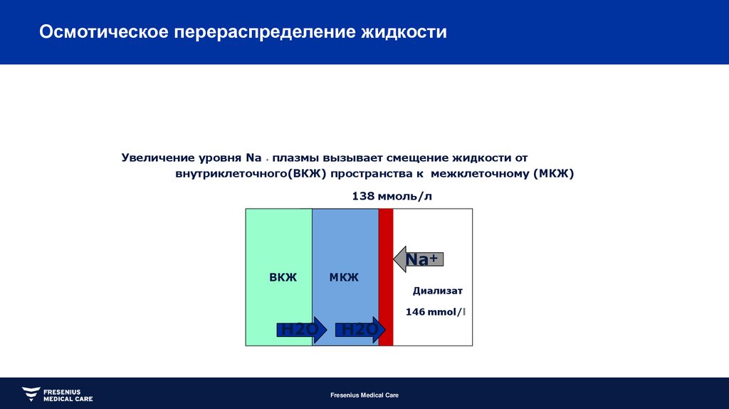Осмотическое перераспределение жидкостиУвеличение уровня Na + плазмы вызывает смещение жидкости от