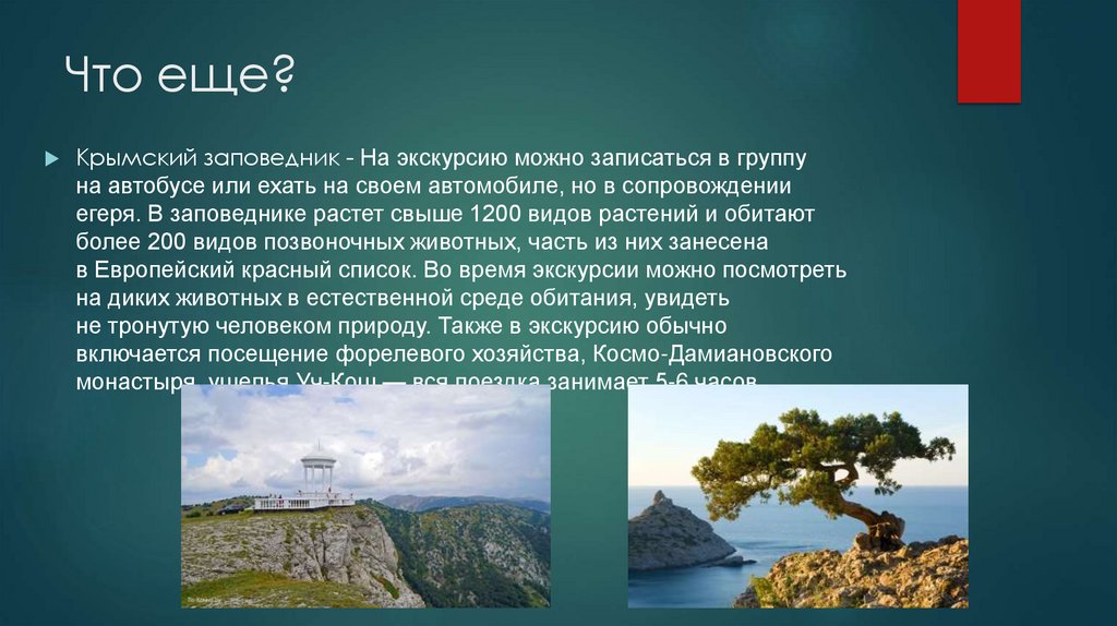 Крымский заповедник - На экскурсию можно записаться в группуна автобусе или ехать на своем автомобиле, но в сопровождении