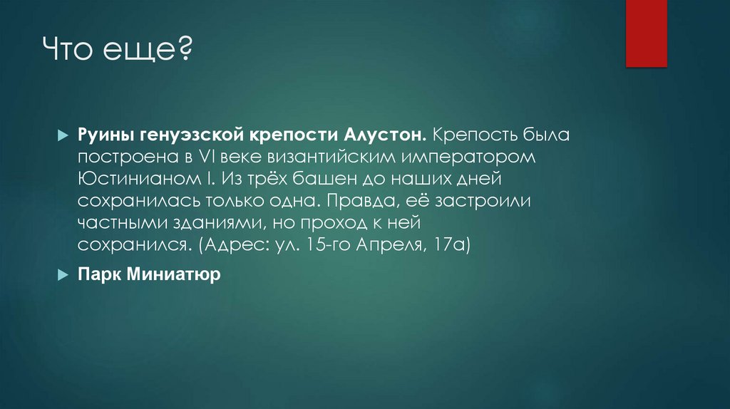 Руины генуэзской крепости Алустон. Крепость былапостроена в VI веке византийским императором