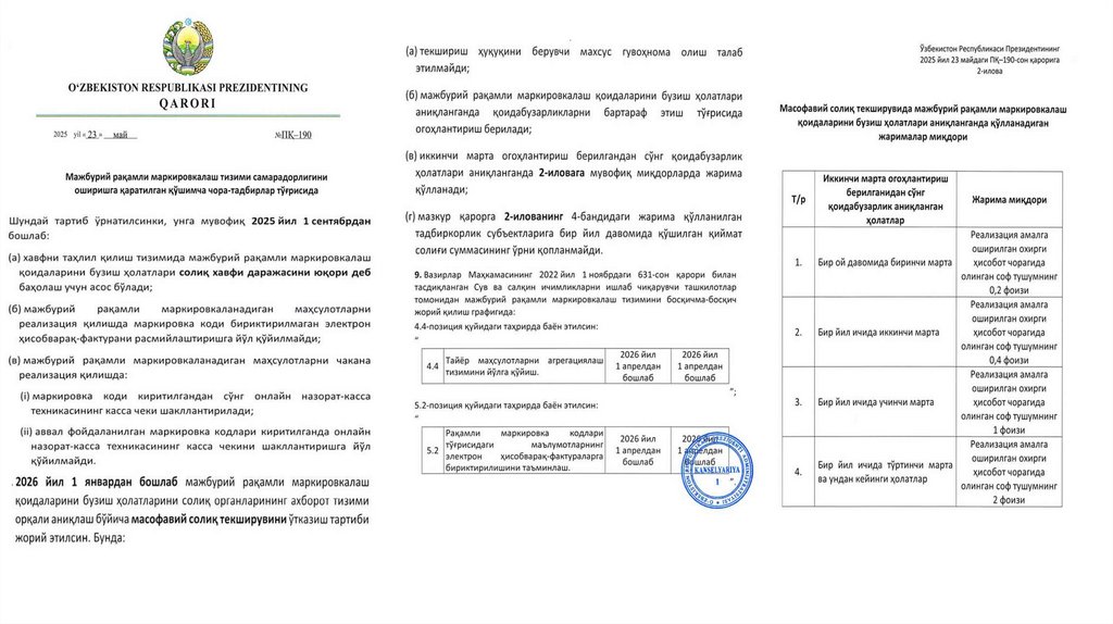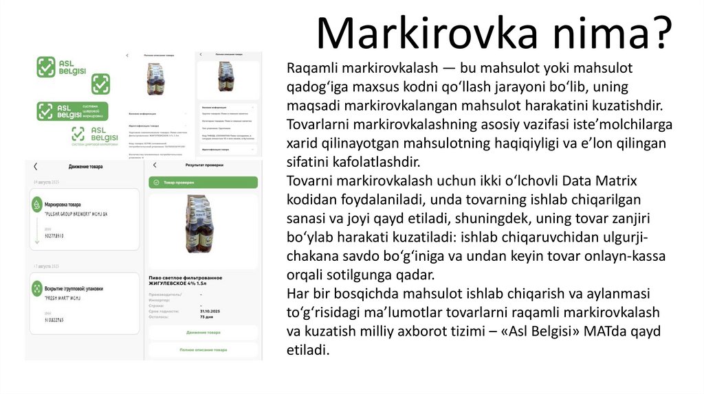 yuklatiladi. Markirovka qilinmagan mahsulot noqonuniy