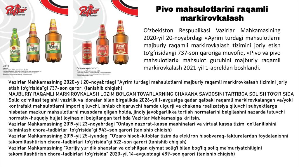 to‘g‘risida»gi 737-son qaroriga muvofiq, «Pivo va pivo