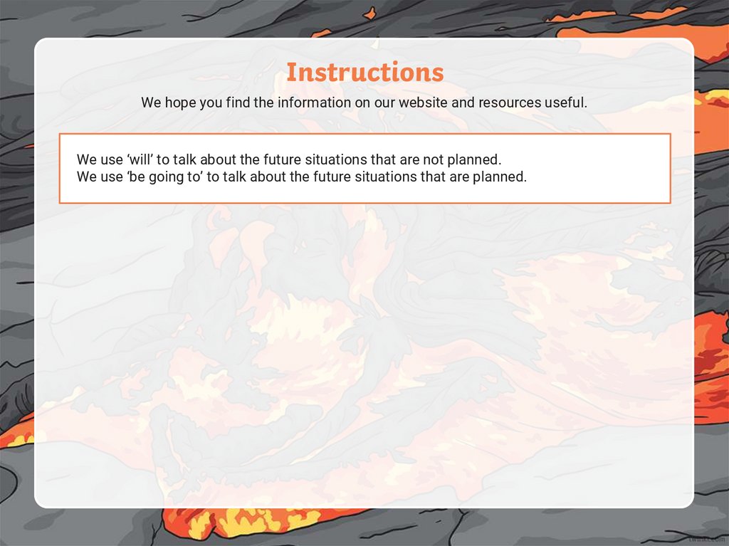 This game will help you practice the differencebetween ‘will’ and ‘be going to’.