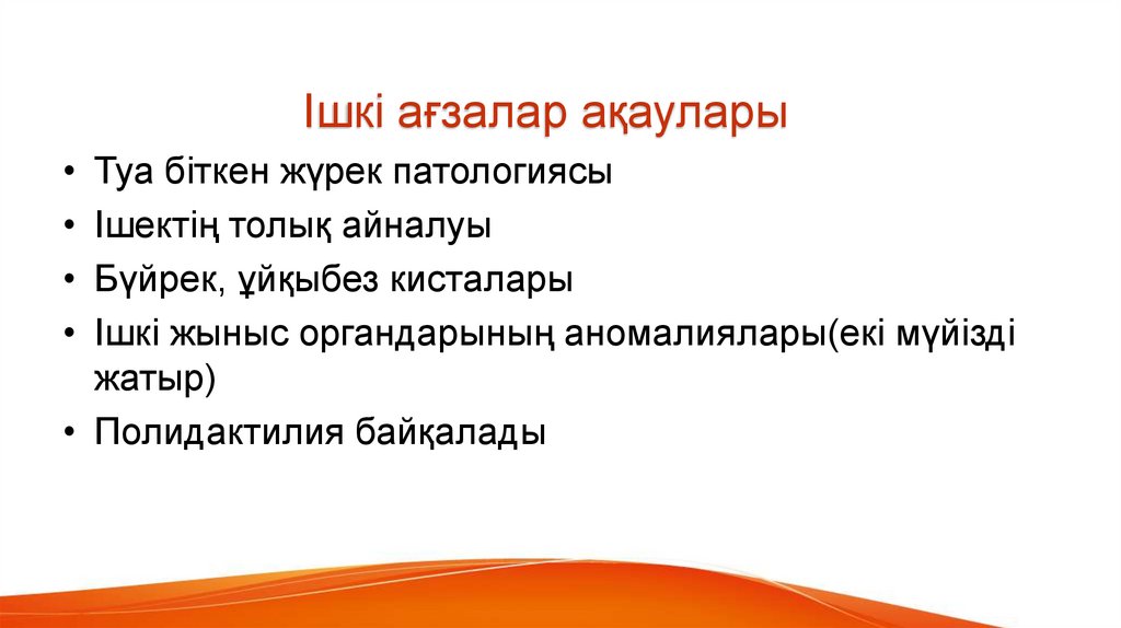 Ішкі ағзалар ақаулары• Туа біткен жүрек патологиясы