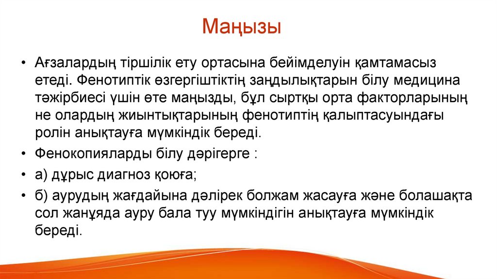 етедi. Фенотиптік өзгергіштіктің заңдылықтарын білу медицина