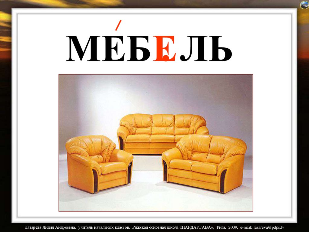 МЕБЕ. ЛЬЛазарева Лидия Андреевна, учитель начальных классов, Рижская основная школа «ПАРДАУГАВА», Рига, 2009, e-mail: lazareva@pdps.lv