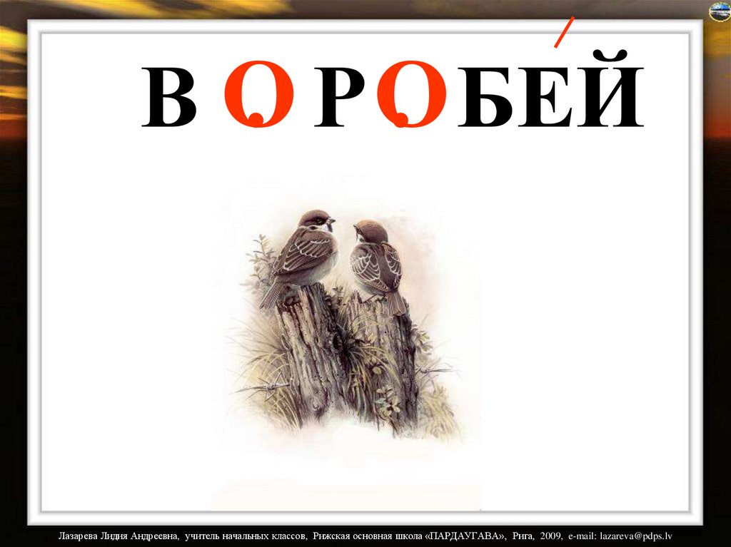 МО. РКОВЬЛазарева Лидия Андреевна, учитель начальных классов, Рижская основная школа «ПАРДАУГАВА», Рига, 2009, e-mail: lazareva@pdps.lv