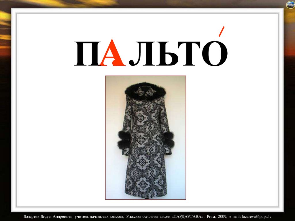 ПА. ЛЬТОЛазарева Лидия Андреевна, учитель начальных классов, Рижская основная школа «ПАРДАУГАВА», Рига, 2009, e-mail: lazareva@pdps.lv