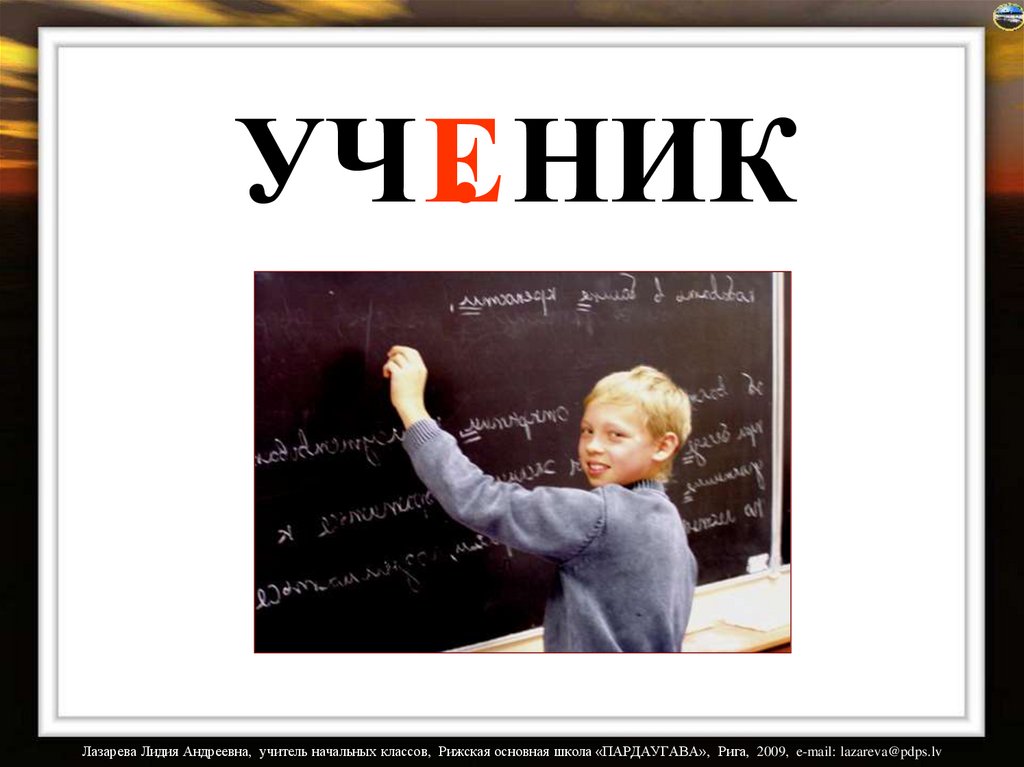 УЧ Е. НИКЛазарева Лидия Андреевна, учитель начальных классов, Рижская основная школа «ПАРДАУГАВА», Рига, 2009, e-mail: lazareva@pdps.lv