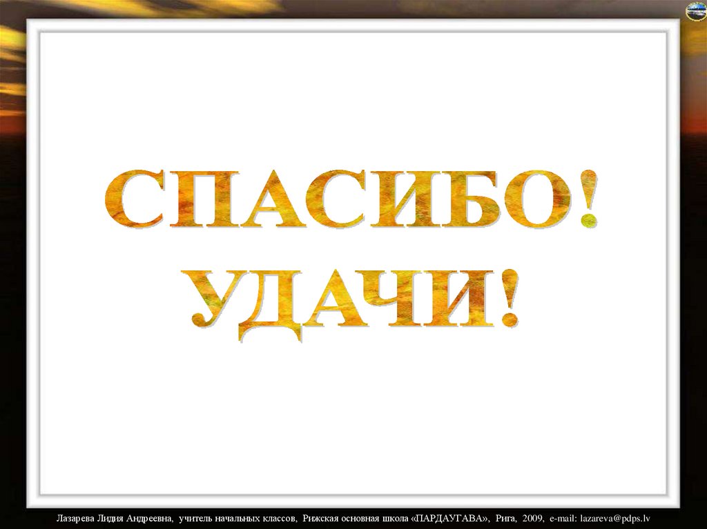 Лазарева Лидия Андреевна, учитель начальных классов, Рижская основная школа «ПАРДАУГАВА», Рига, 2009, e-mail: lazareva@pdps.lv