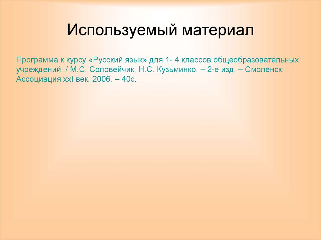 Программа к курсу «Русский язык» для 1- 4 классов общеобразовательныхучреждений. / М.С. Соловейчик, Н.С. Кузьминко. – 2-е изд. – Смоленск: