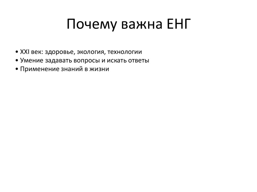 Почему важна ЕНГ• XXI век: здоровье, экология, технологии