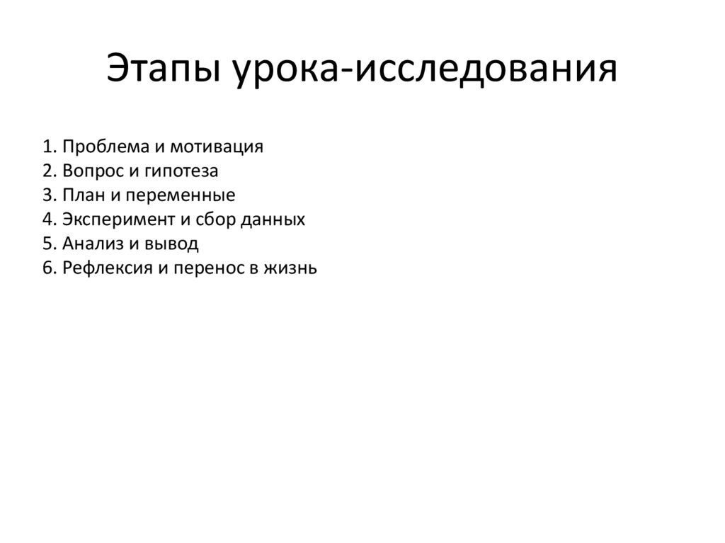 Этапы урока-исследования1. Проблема и мотивация