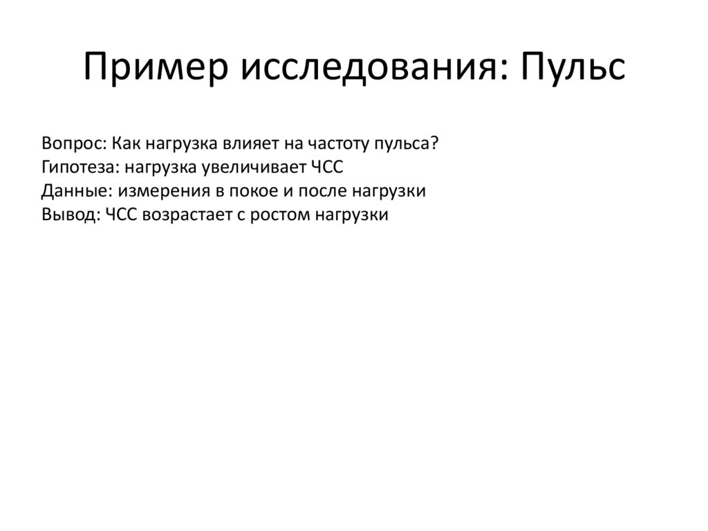Пример исследования: ПульсВопрос: Как нагрузка влияет на частоту пульса?