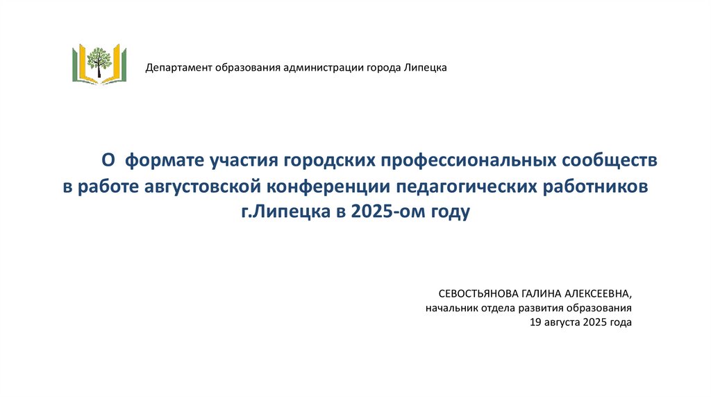 Департамент образования администрации города ЛипецкаО формате участия городских профессиональных сообществ