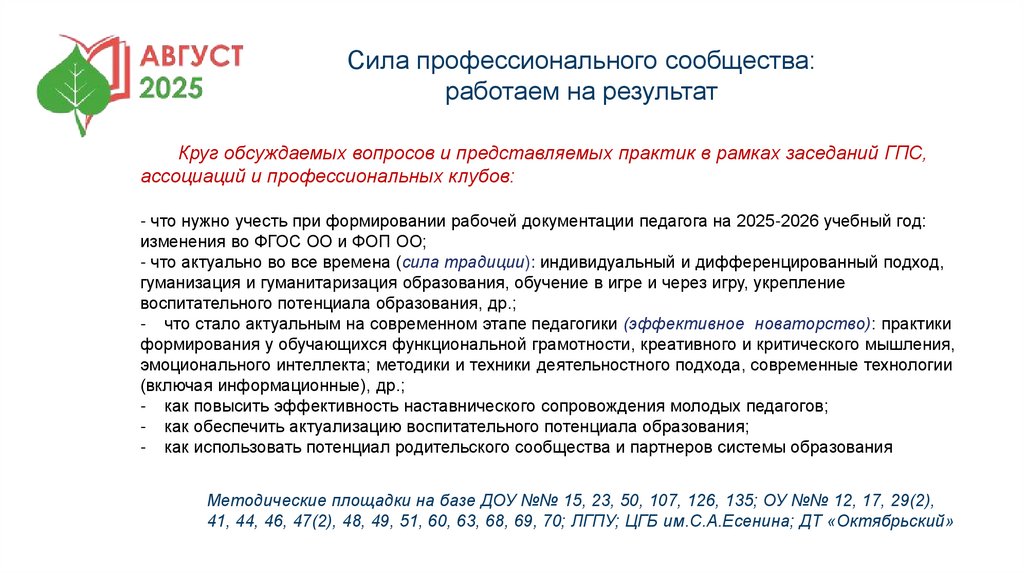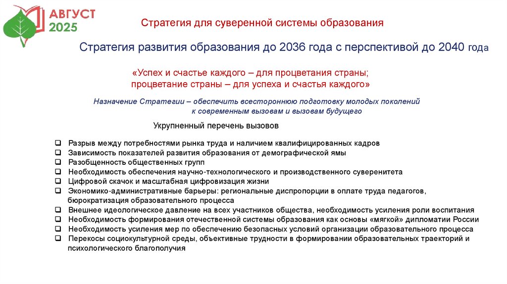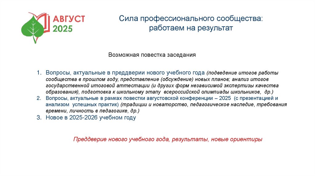 2. Вопросы, актуальные в рамках повестки августовской конференции – 2025 (с презентацией и