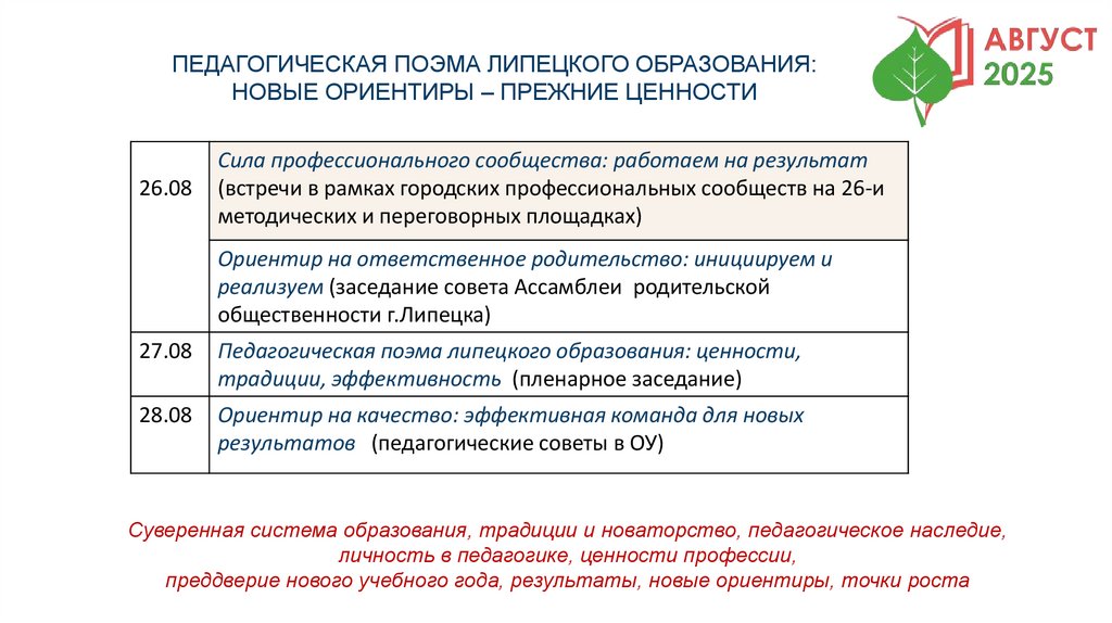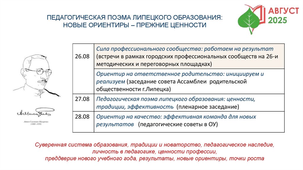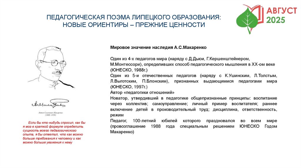 ПЕДАГОГИЧЕСКАЯ ПОЭМА ЛИПЕЦКОГО ОБРАЗОВАНИЯ:НОВЫЕ ОРИЕНТИРЫ – ПРЕЖНИЕ ЦЕННОСТИ