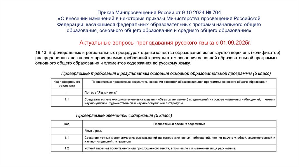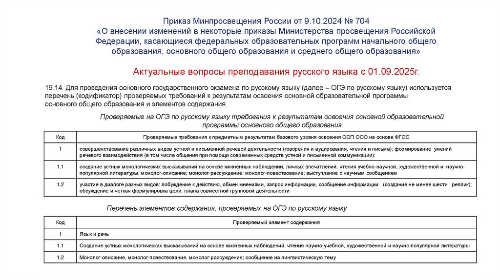 Проверяемые на ОГЭ по русскому языку требования к результатам освоения основной образовательной