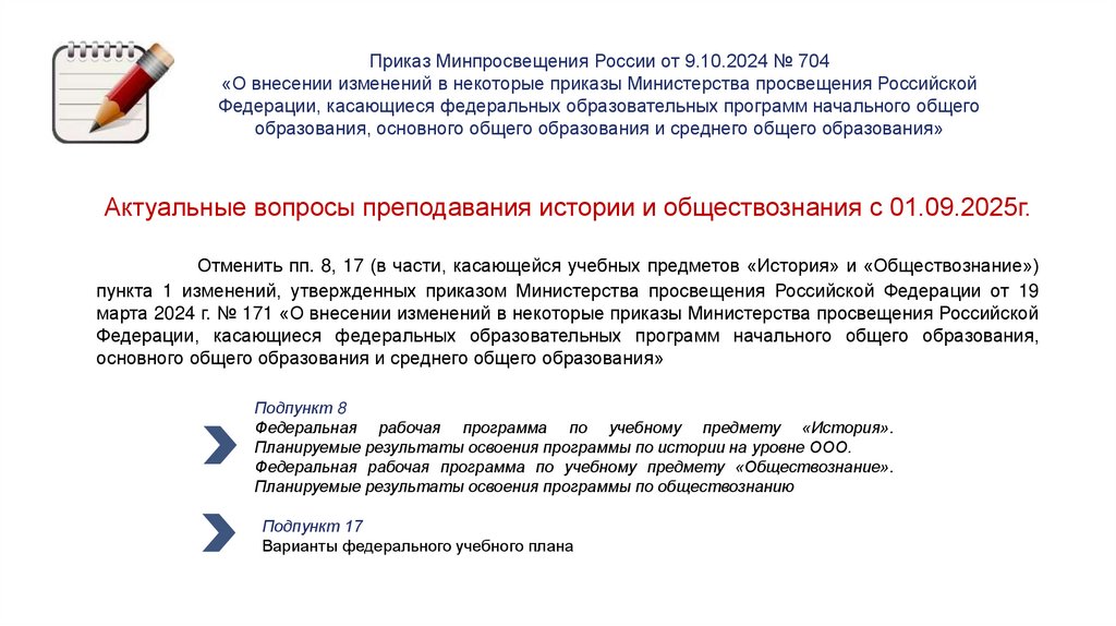 Отменить пп. 8, 17 (в части, касающейся учебных предметов «История» и «Обществознание»)