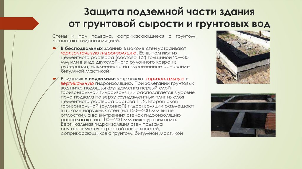 5. Защита подземной части здания от грунтовой сырости и грунтовых вод
