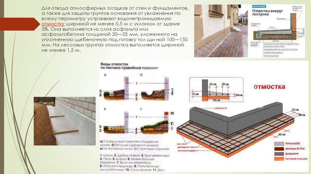 Для отвода атмосферных осадков от стен и фундаментов,а также для защиты грунтов основания от увлажнения по