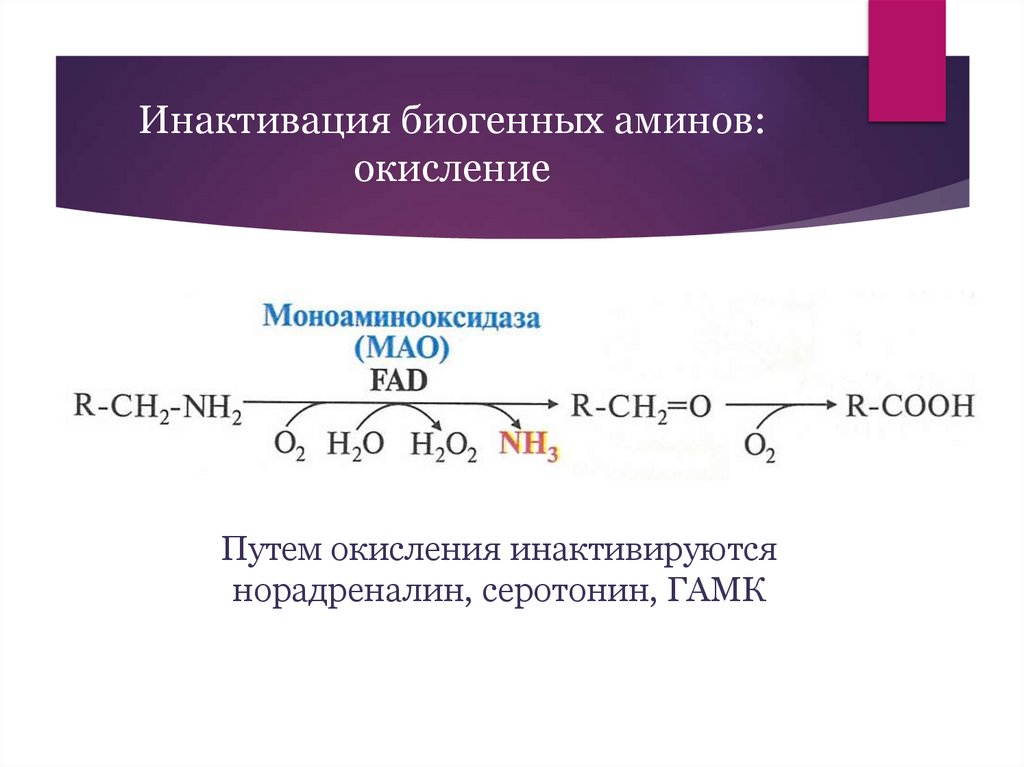 Путем метилирования инактивируется также адреналин16. Инактивация биогенных аминов: окисление