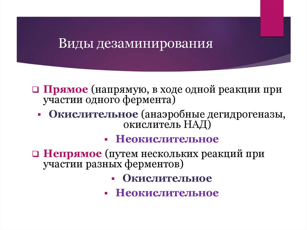 Не дезаминируются пролин и лизин18. Виды дезаминирования