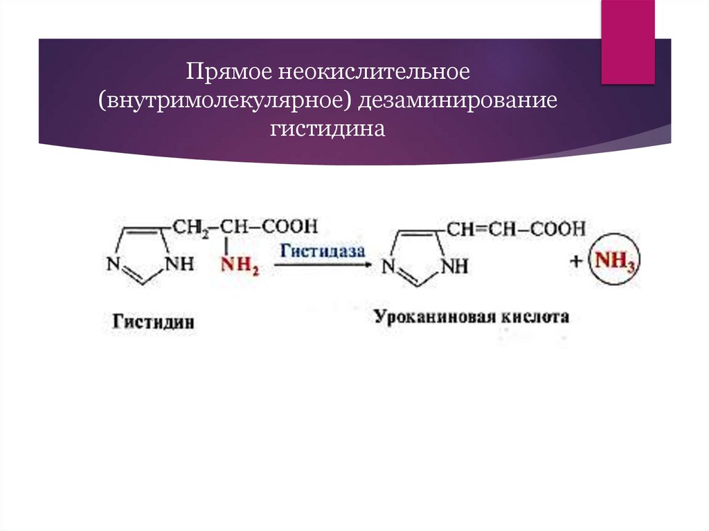21. Прямое неокислительное (внутримолекулярное) дезаминирование гистидина