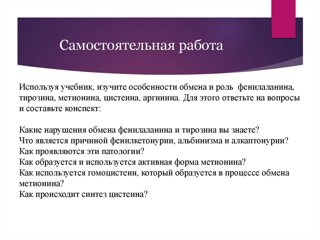 Используя учебник, изучите особенности обмена и роль фенилаланина,тирозина, метионина, цистеина, аргинина. Для этого ответьте на вопросы