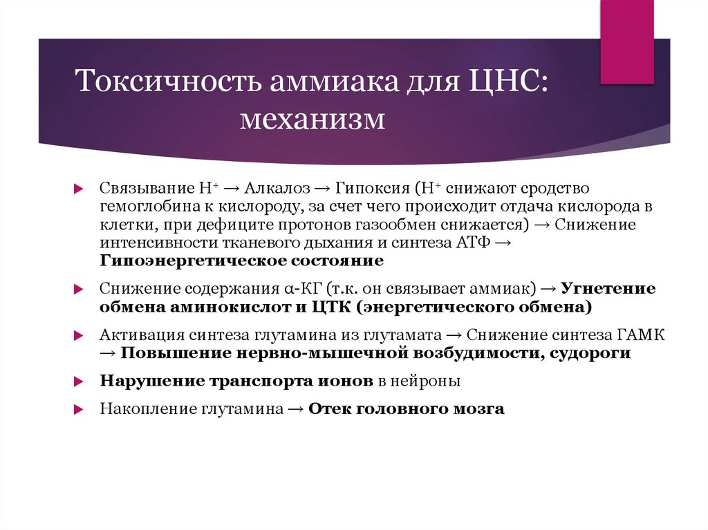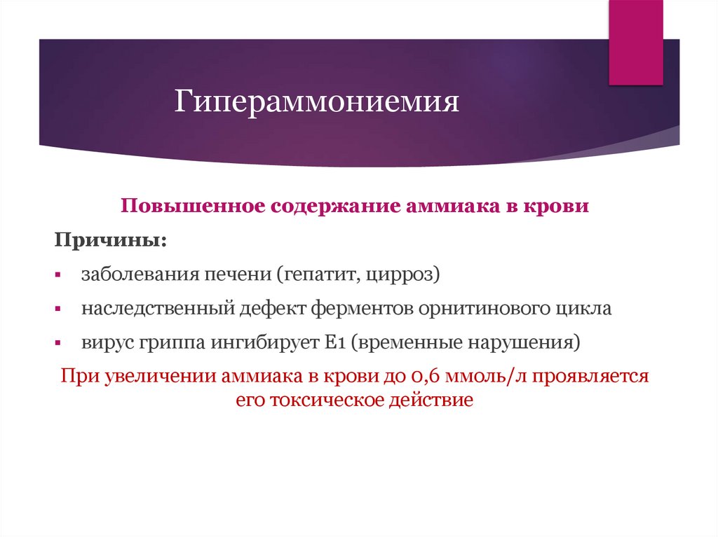 При увеличении аммиака в крови до 0,6 ммоль/л проявляется