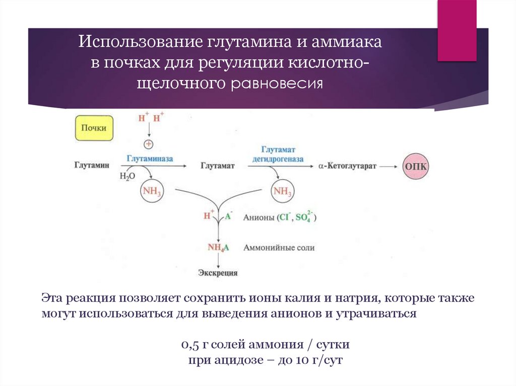 Использование глутамина и аммиакав почках для регуляции кислотнощелочного равновесия