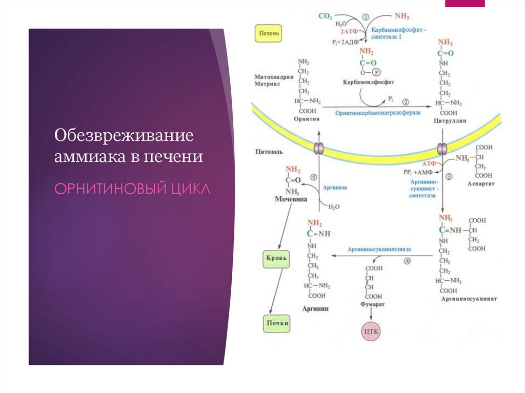обезвреживания (универсальный механизм и реакции орнитинового цикла).