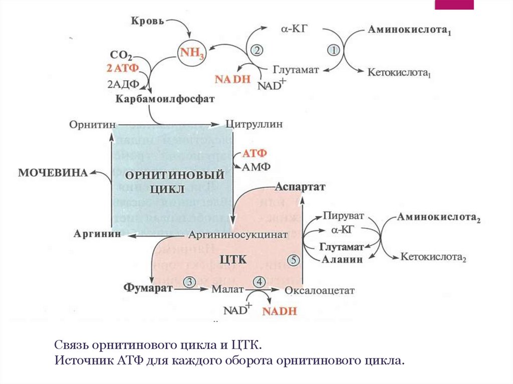 Связь орнитинового цикла и ЦТК.Источник АТФ для каждого оборота орнитинового цикла.