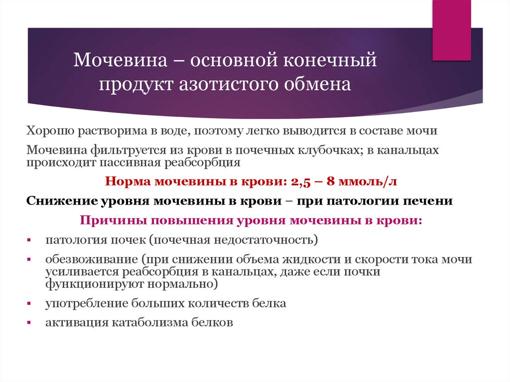Норма мочевины в крови: 2,5 – 8 ммоль/л