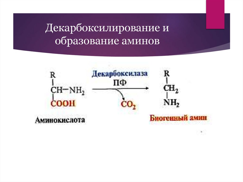 декарбоксилирования, дезаминирования): суть реакций, ферменты, витаминыкоферменты, продукты, роль реакций, виды дезаминирования, регуляция процессов