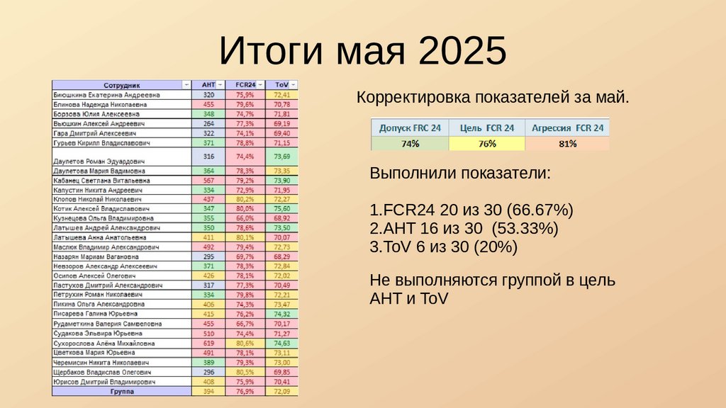 Итоги мая 2025Корректировка показателей за май.