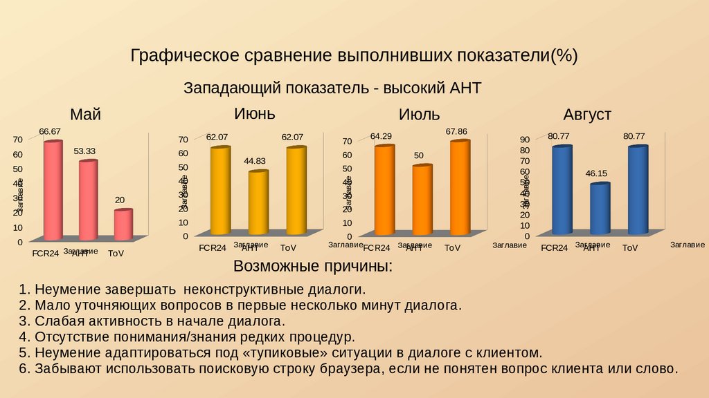 Графическое сравнение выполнивших показатели(%)Западающий показатель - высокий AHT